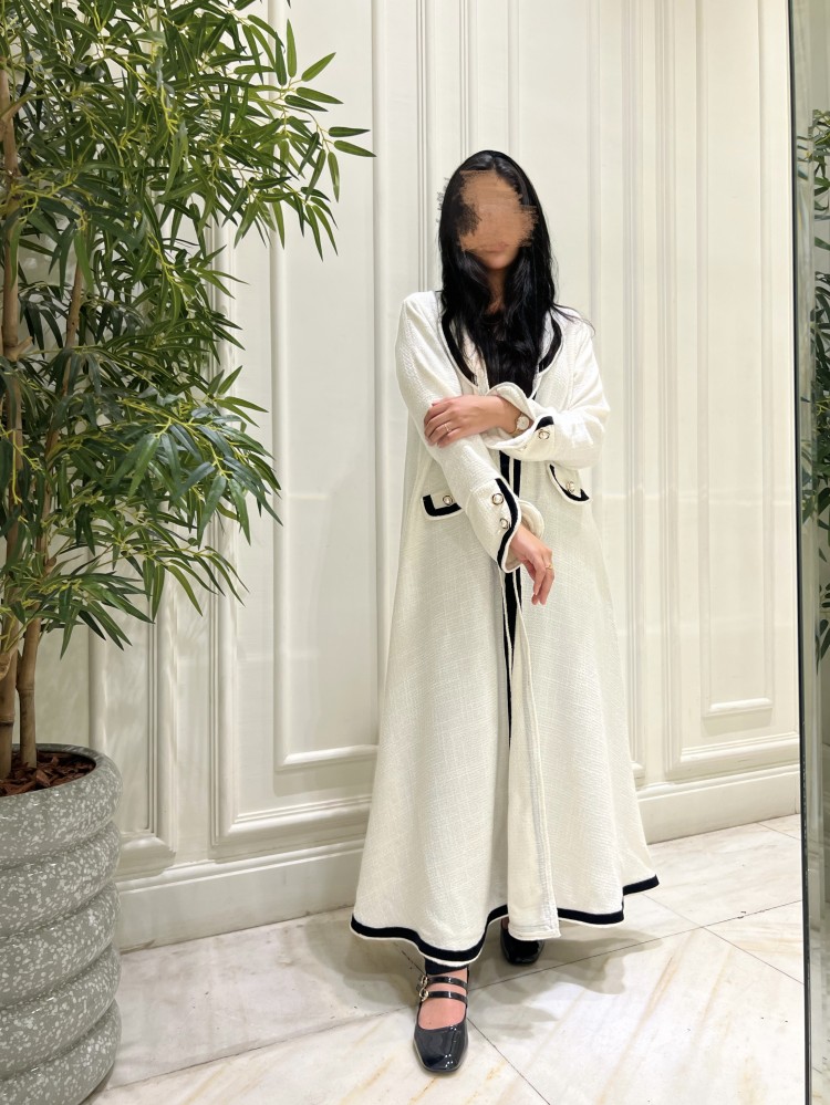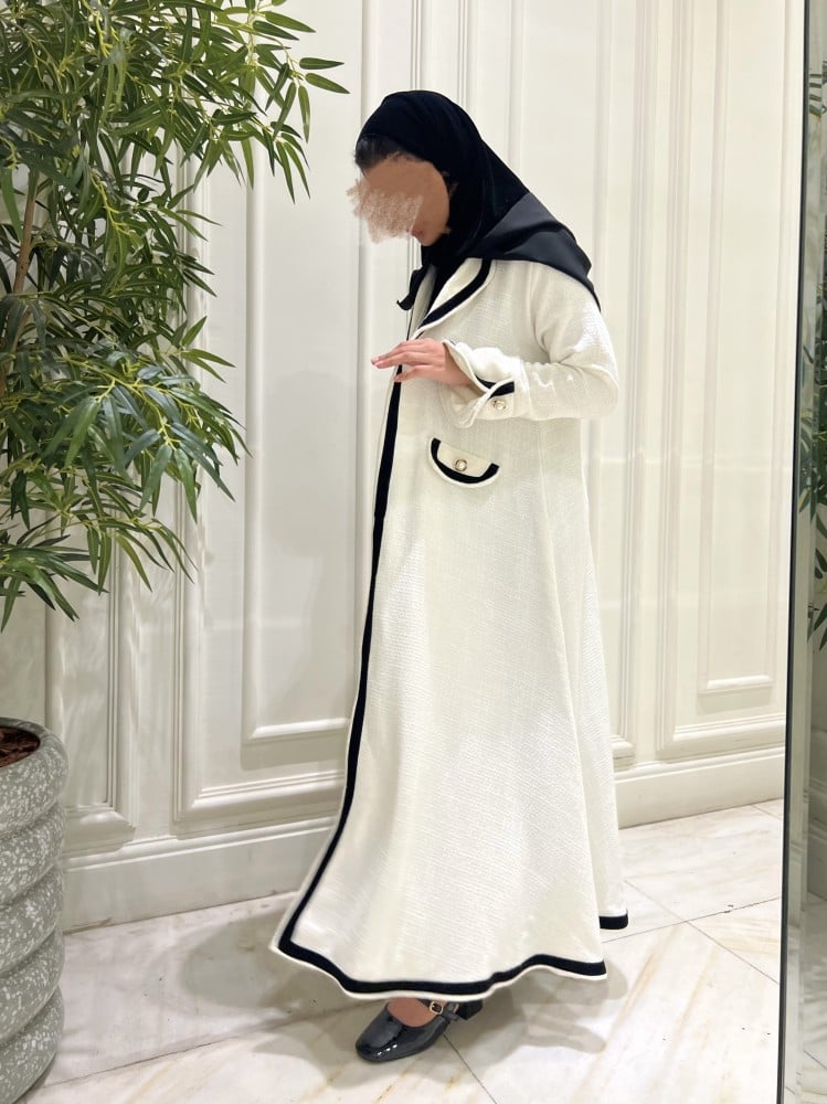 القماش : شانيل اللون سكري الاطراف مخمل اسود + شامل الطرحه