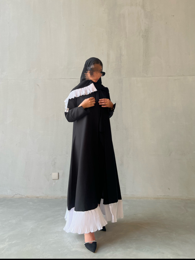 القماش : اسود كتان ، مكسر ابيض , شامل الطرحه