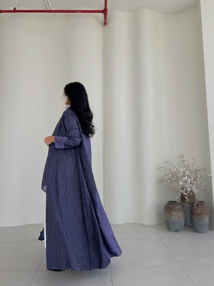 القماش : جاكار موف خفيف + قماش ستان باللون الموف الفاتح