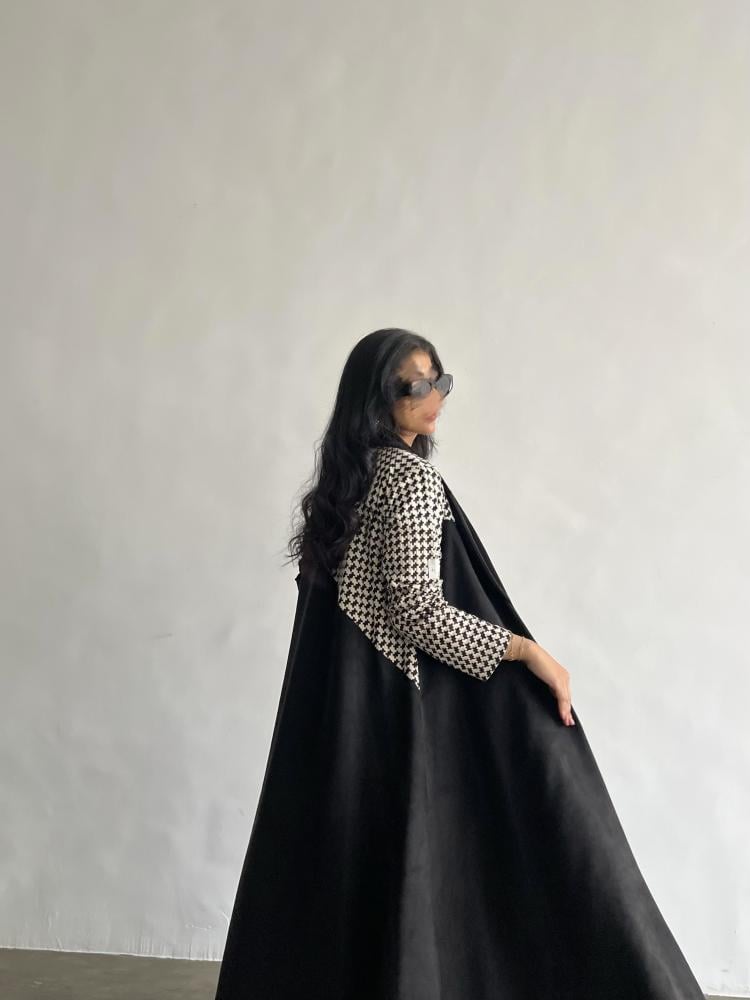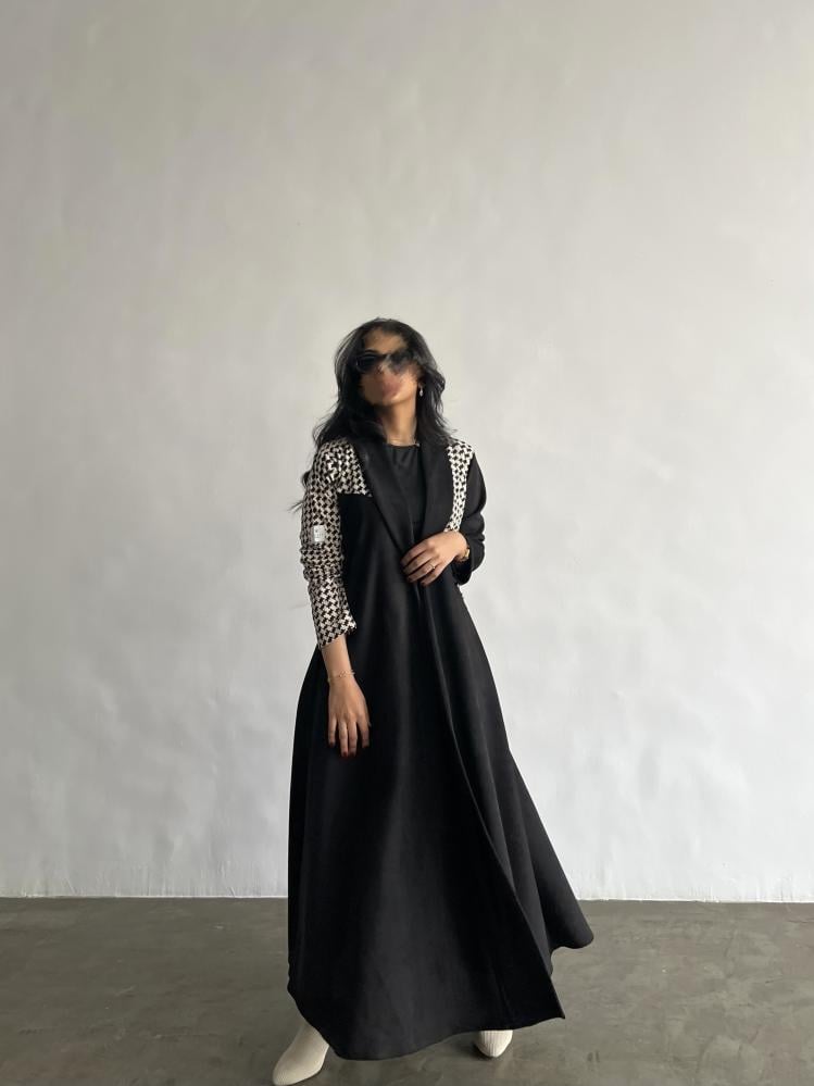 القماش : شامواه اسود + قماش مخمل مربعات اسود وابيض